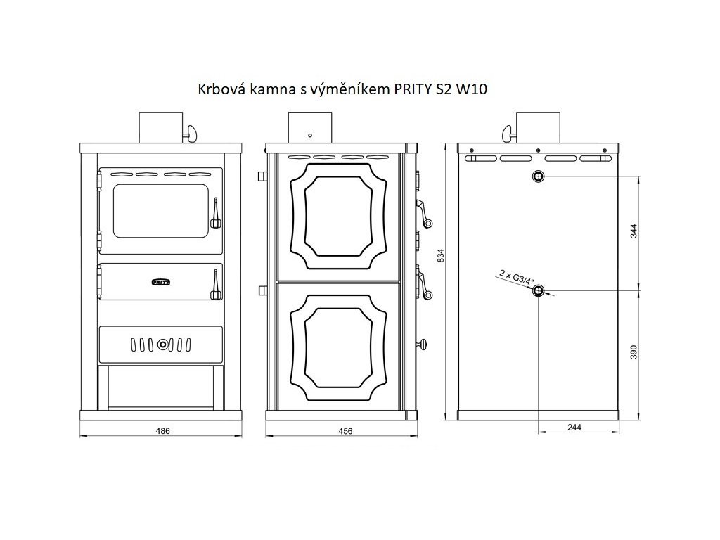 Krbová kamna s teplovodním výměníkem PRITY S2 W10
