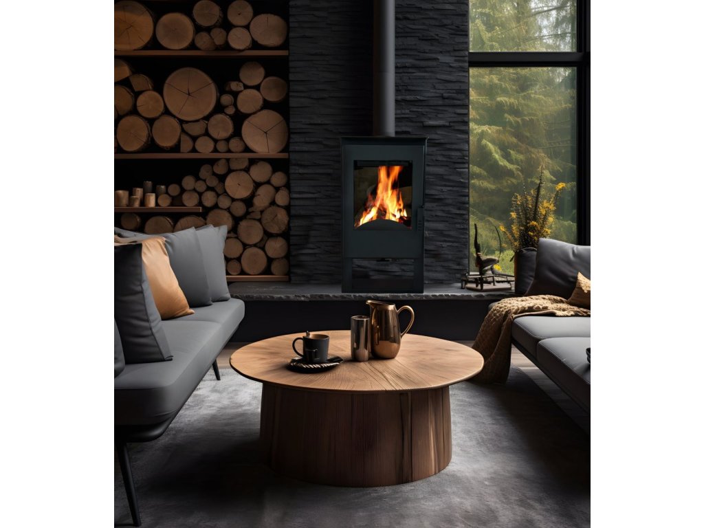Krbová kamna v moderním designu s vysokým výkonem.