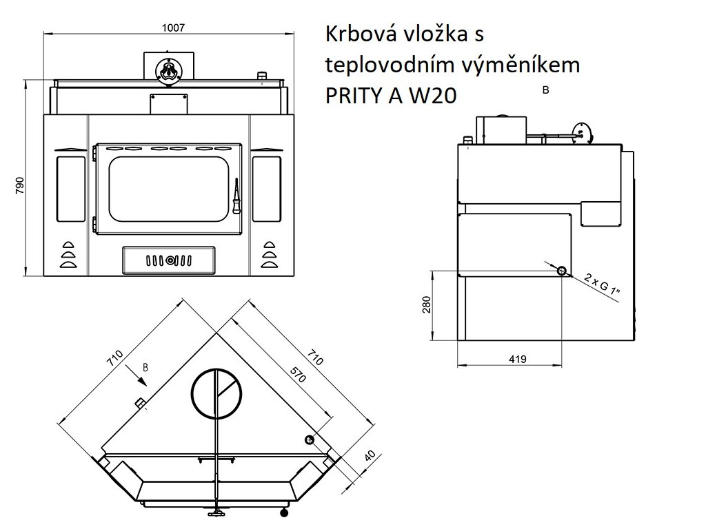 Krbová vložka s teplovodním výměníkem PRITY A W20