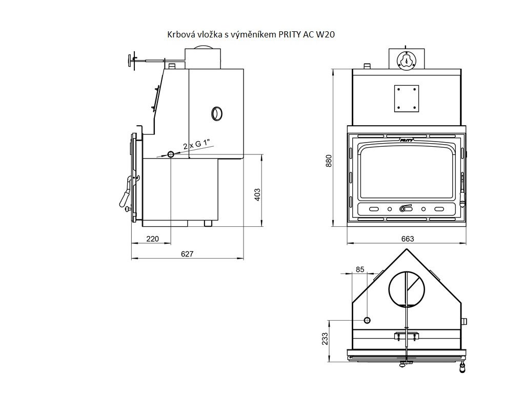 Krbová vložka s teplovodním výměníkem PRITY AC W20