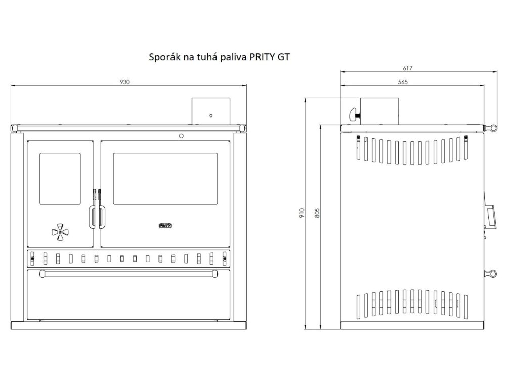 Sporák na tuhá paliva PRITY GT FS S DR, černá, pravá