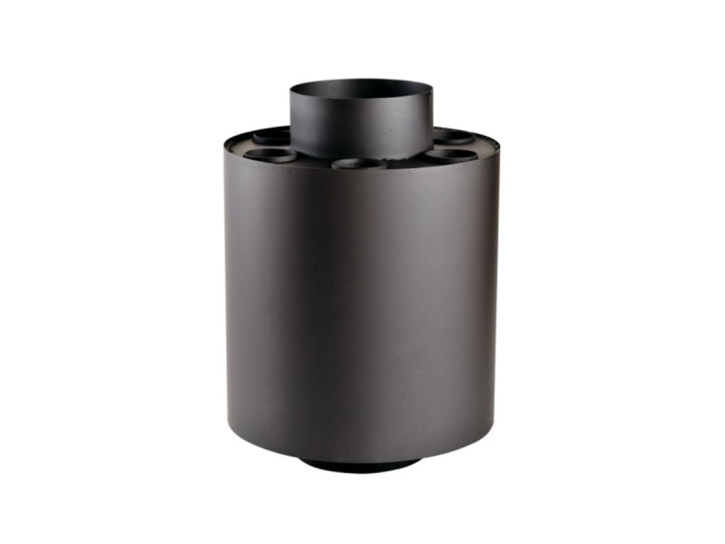 Díky teplovzdušnému výměníku toto teplo využijete a zvýšíte účinnost kamen. Vzhledem k integrovaným kanálům ve stěně horkovzdušného výměníku dochází k proudění vzduchu. Studený vzduch proudí zdola do kanálů ve výměníku, kde je ohříván a následně je ohřátý vzduch vylučován do prostoru.