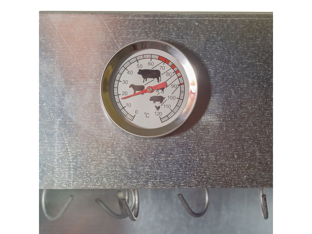 Přísun vzduchu a množství kouře se reguluje za pomoci otevíracích dvířek ve spodní části udírny a horního otvoru. Při procesu uzení sledujte teplotu na teploměru v horní části dvířek.